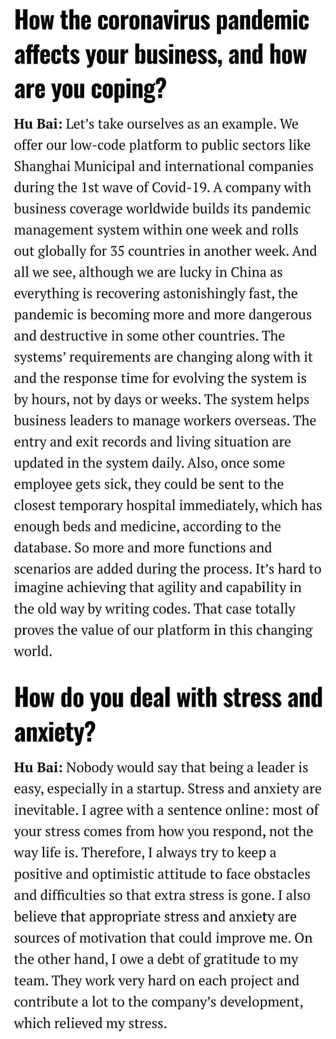 2021年年初,,,,,,,,,爱湃斯科技CEO胡柏受邀接受法媒Startup.info的专访,,,,,,,,,,,,,与Startup info的读者分享了自己的创业经历、、、、、、以及低代码平台VIVO钱包的创新之处。。。。。。。。。。。。。。。